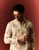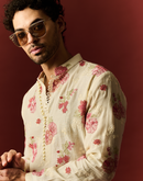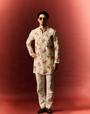 CHANDERI IVORY KURTA SET WITH FLORAL EMBROIDERY IN HUES OF LOVE