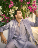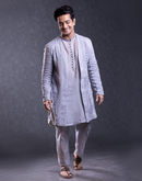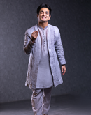 DOVE GREY EMBROIDERED JACKET & CHANDERI KURTA SET