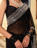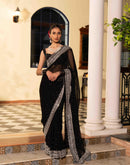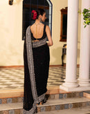 Jade georgette sequin saree with sequin, dori and zardozi border paired with tussar silk sequin blouse