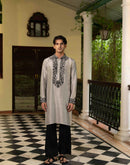 Slate grey tussar silk kurta with charcoal resham mirror work Kurta with raven black tussar silk pant