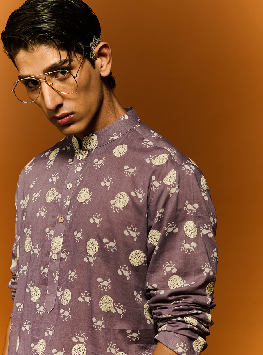 LAVENDAR COTTON FLORAL KURTA SETS EXAGGERATEDWITH THREAD EMBROIDERY style code: NN - 25