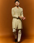 IVORY CHANDERI OPEN STYLE KURTA SET WITH ZARI