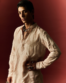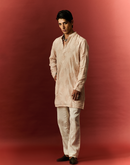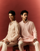 LUCKNOWI WORK CRAYOLA PEACH SILK KURTA
