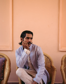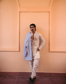 CHEVRON POWDER BLUE JACKET + BANARSI JACQUARD KURTA + CHUDIDAR