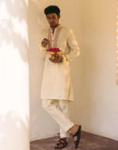 COTTON WITH GOLD LUREX KURTA EXAGGERATED WITH ROSE HAND EMBROIDERED