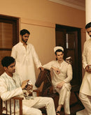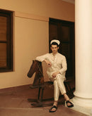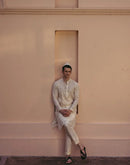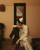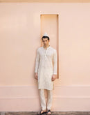 IVORY COTTON MUL KURTA WITH SILVER GEOMETRIC EMBROIDERY + CHANDERI PANTS